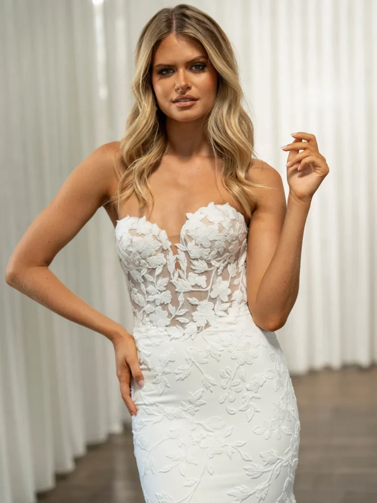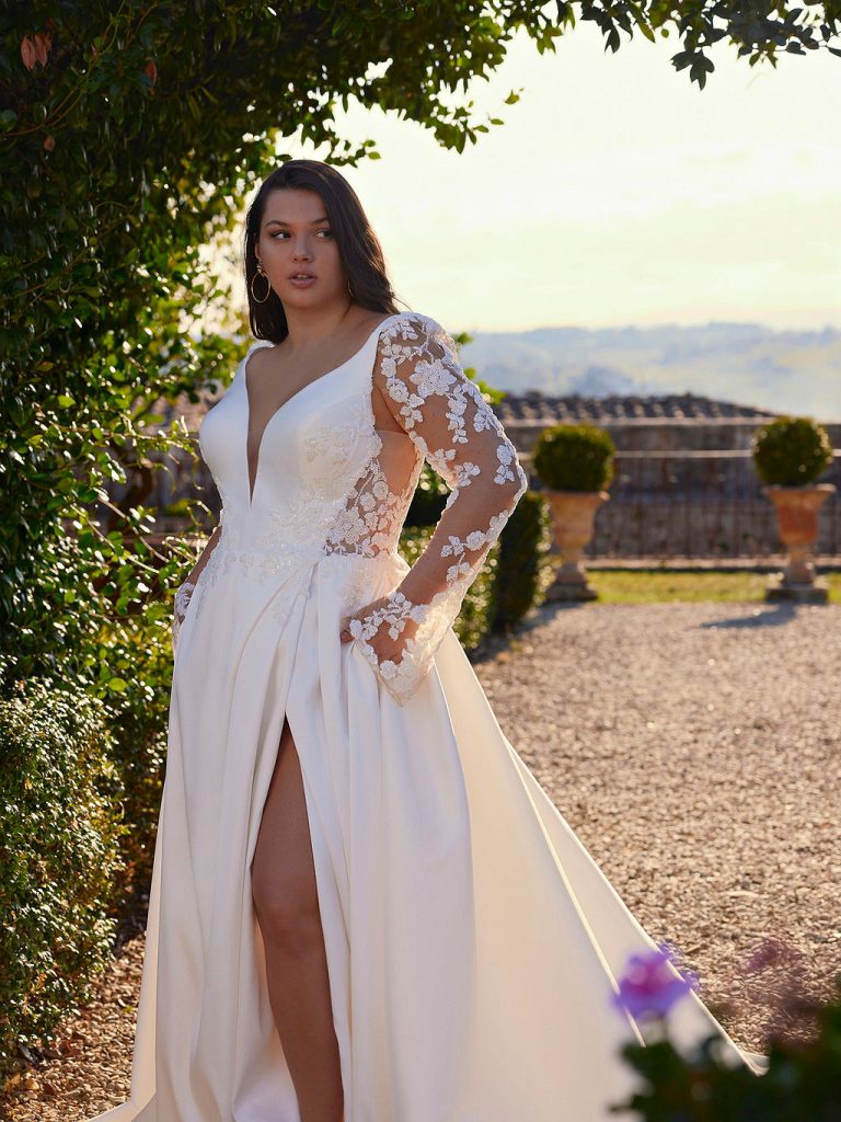 Less is more blijft ook in 2025 een trouwjurken trend. Strakke, moderne lijnen gecombineerd met hoogwaardige stoffen zoals zijde of mikado zijn de perfecte keuze voor bruiden die houden van eenvoud met een vleugje luxe. Denk aan jurken met vierkante halslijnen, open rugdetails, en subtiele glitteraccenten. Deze jurken zijn ideaal voor een chique bruiloft in Noord-Brabant.